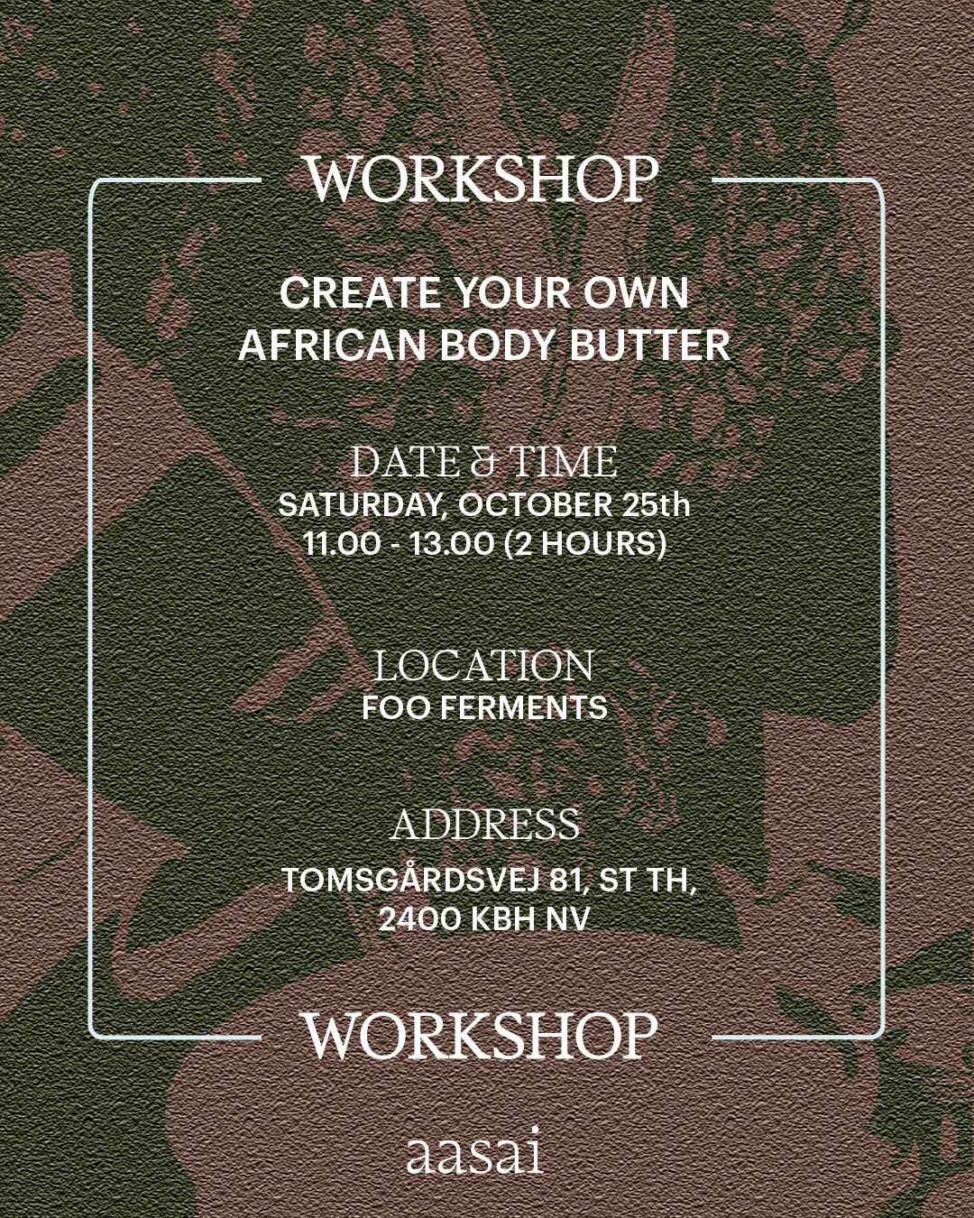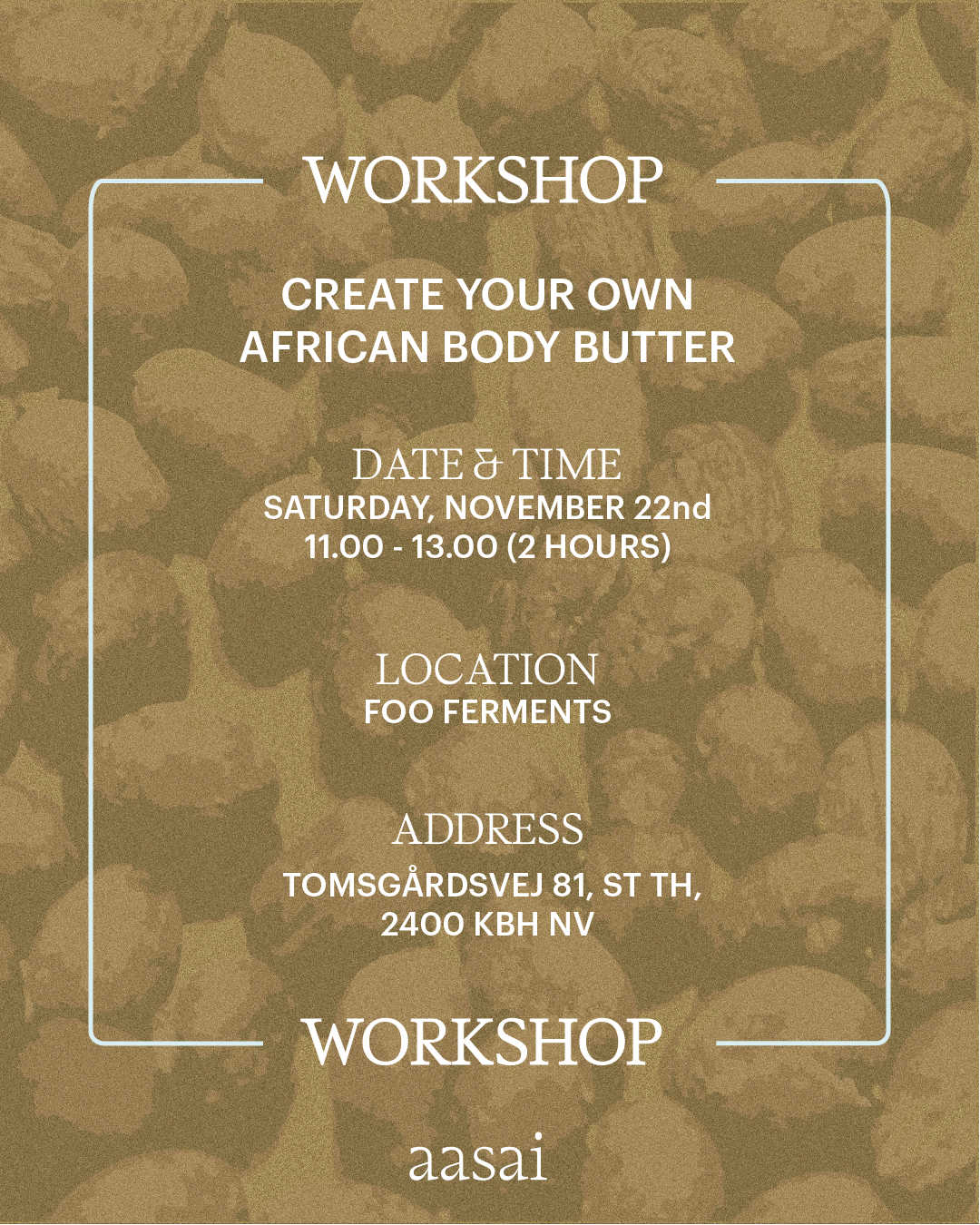 For those of you curious about natural skincare and African ingredients, this workshop is a chance to get to know Shea Butter Nilotica. In East Africa, where this rare butter is wildly hand-harvested, it’s valued for its soft texture and nourishing care.